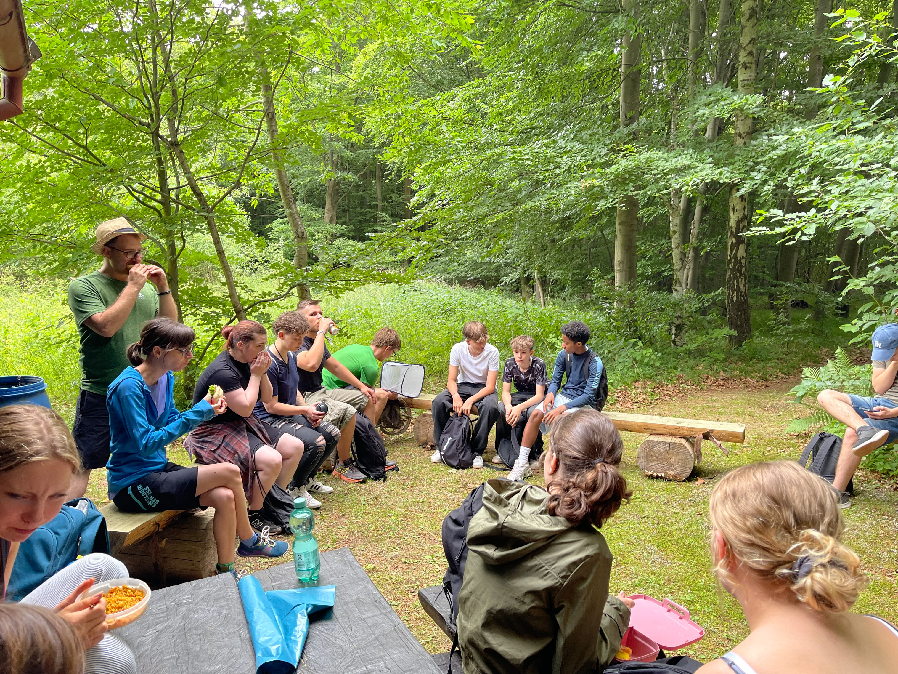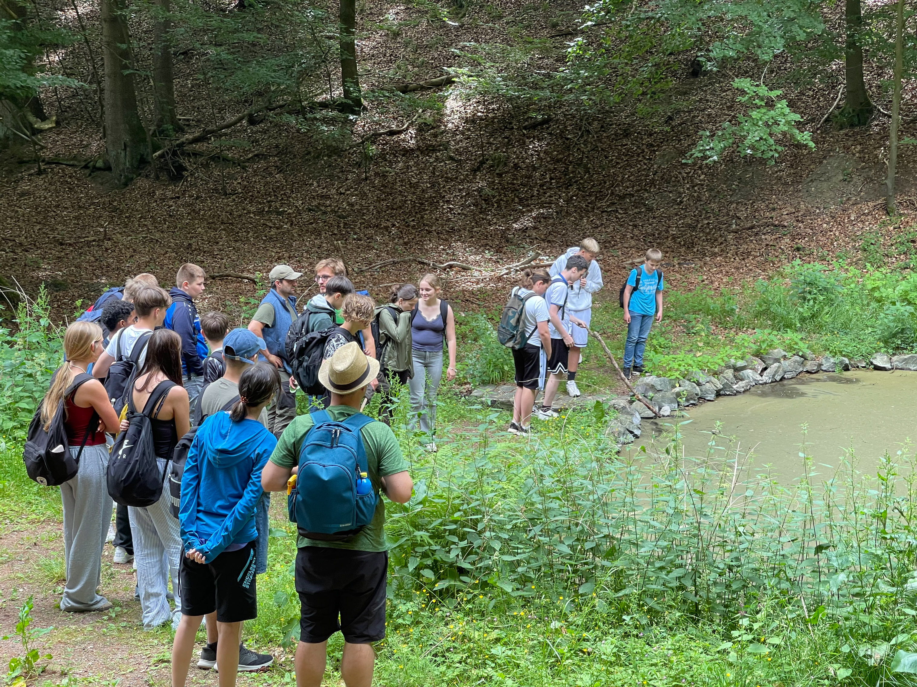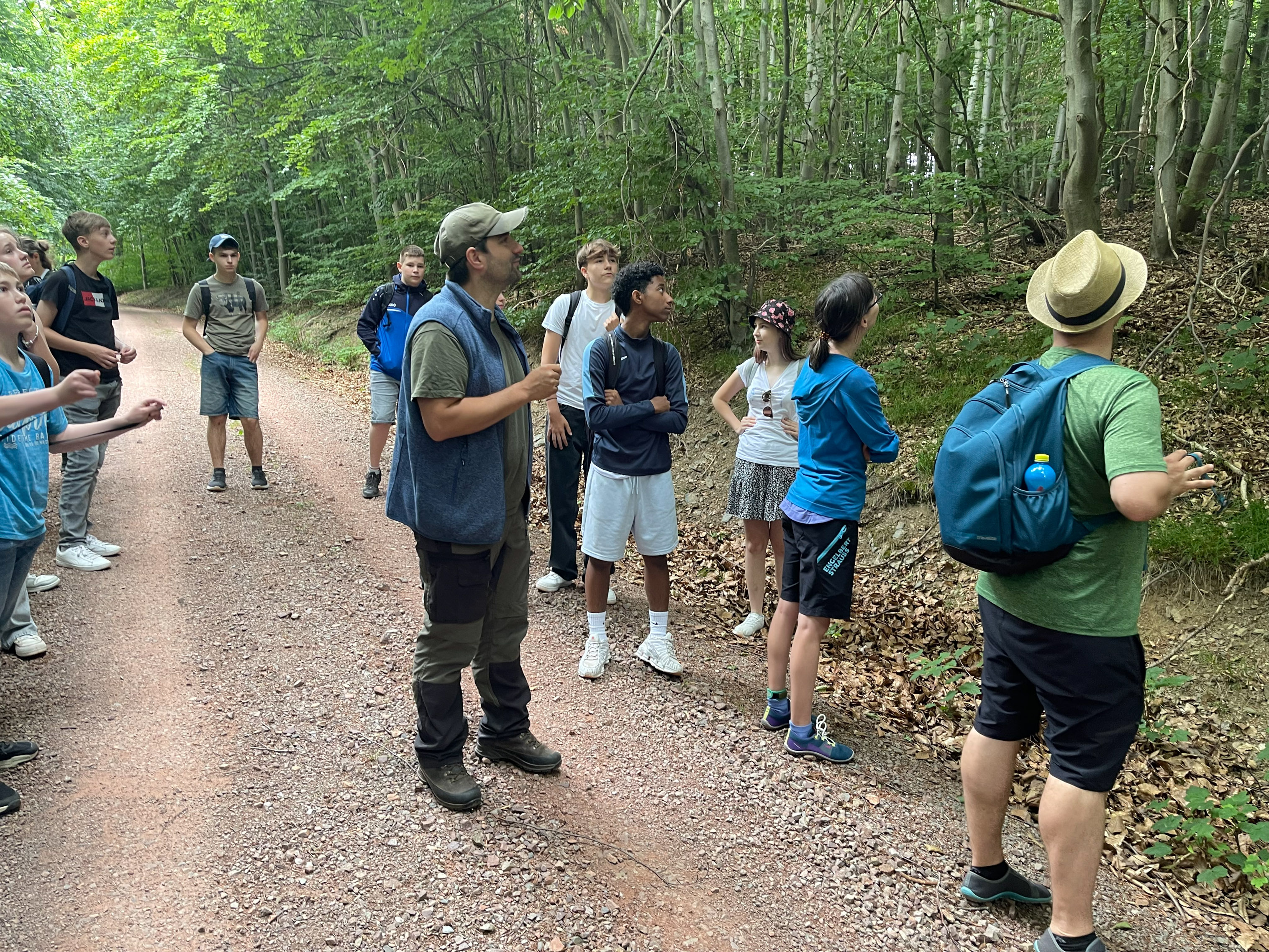Über sieben Kilometer führte die Lehr-Wanderung durch unterschiedliche Lebensräume. Angeleitet von SUNK-Naturerbewald-Leiter Ulrich Jabin erfuhren die Jugendlichen, welche zentrale Rolle Wälder, Moore, Gewässer und Totholz im Klimaschutz spielen. Spielerisch und praxisnah vermittelten die Fachleute Themen wie Biodiversität, CO₂-Speicherung und Artenschutz.