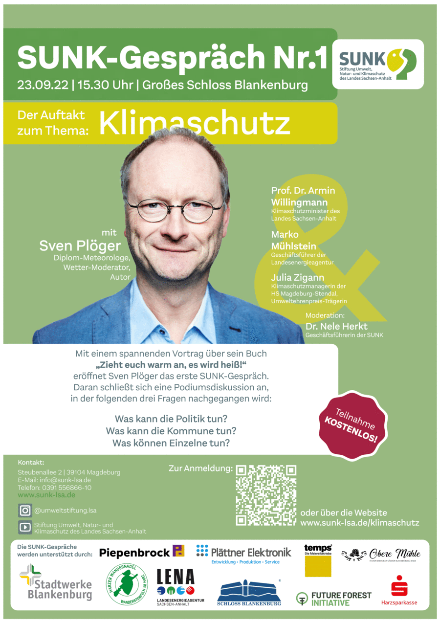Im Anschluss diskutierte - unter der Moderation von Dr. Nele Herkt, der Geschäftsführerin der SUNK - Sven Plöger gemeinsam mit dem Minister für Wissenschaft, Energie, Klimaschutz und Umwelt des Landes Sachsen-Anhalt, Prof. Dr. Armin Willingmann, dem Geschäftsführer der Landesenergieagentur Sachsen-Anhalt, Marko Mühlstein, sowie der Klimaschutzmanagerin der Hochschule Magdeburg-Stendal und Umweltehrenpreis-Trägerin Sachsen-Anhalt, Julia Marie Zigann, zu den folgenden drei Fragen: